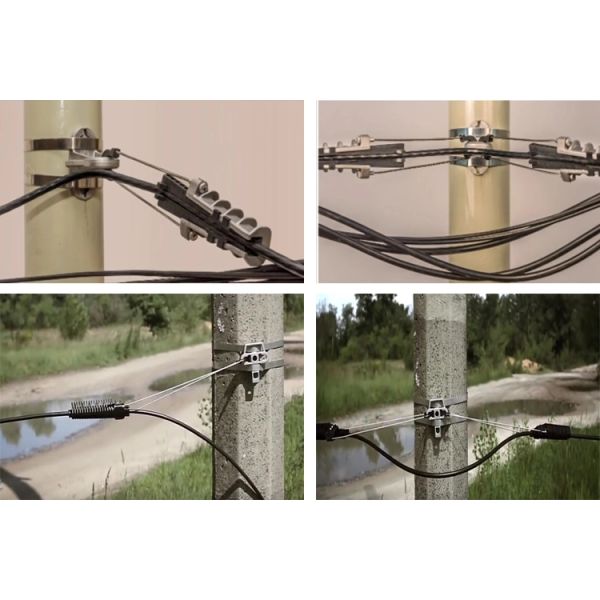 low voltage ABC strain clamp used on pole with aluminum bracket